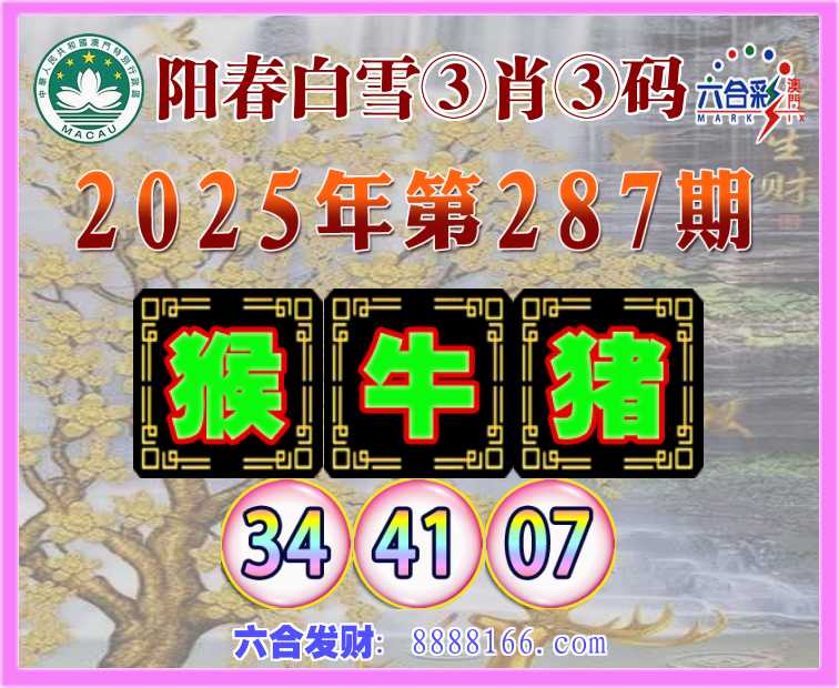 287期:《阳春白雪》 🥽③肖③码🥽【猴牛猪】【34.41.07】开:猴34准