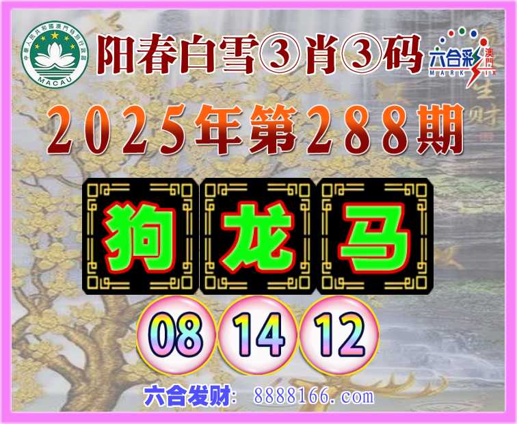 288期:《阳春白雪》 🥽③肖③码🥽【狗龙马】【08.14.12】开:龙14准
