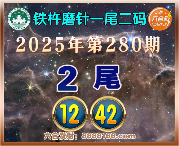 280期:《铁杵磨针》 ☺️一尾二码☺️【2尾主:12.42】开:42准