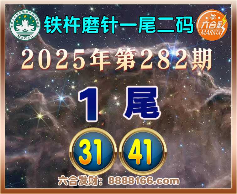 282期:《铁杵磨针》 ☺️一尾二码☺️【1尾主:31.41】开:41准