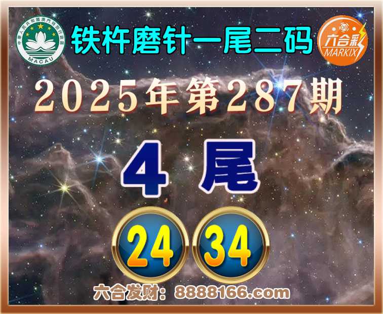 287期:《铁杵磨针》 ☺️一尾二码☺️【4尾主:24.34】开:34准