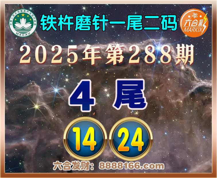 288期:《铁杵磨针》 ☺️一尾二码☺️【4尾主:14.24】开:14准
