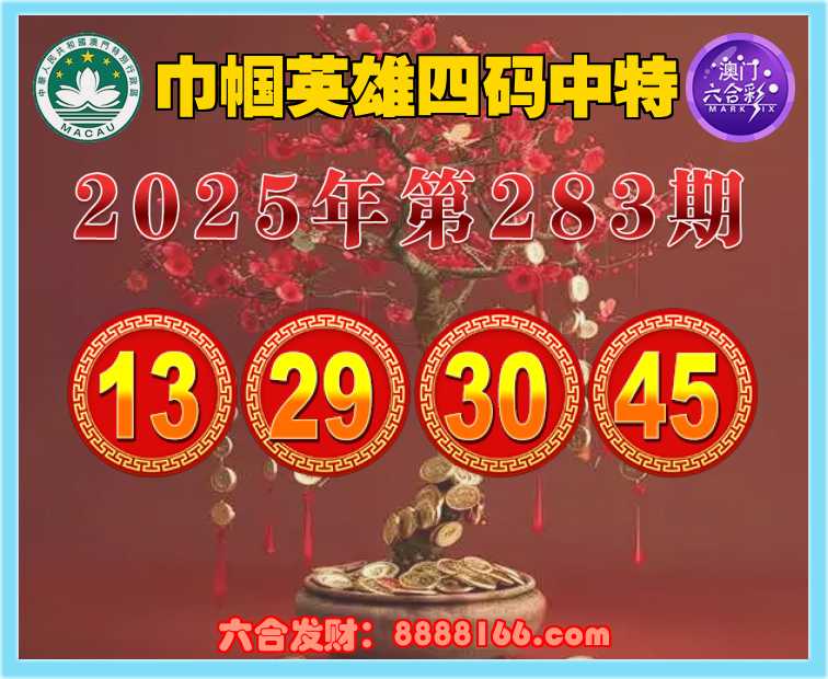 283期:【巾帼英雄】 🚣四码中特🚣【13.29.30.45】开:45准