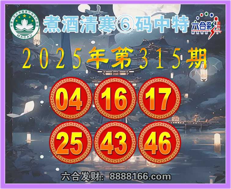 315期:《煮酒清寒》 🍧⑥码中特🍧【04.16.17.25.43.46】开:04准
