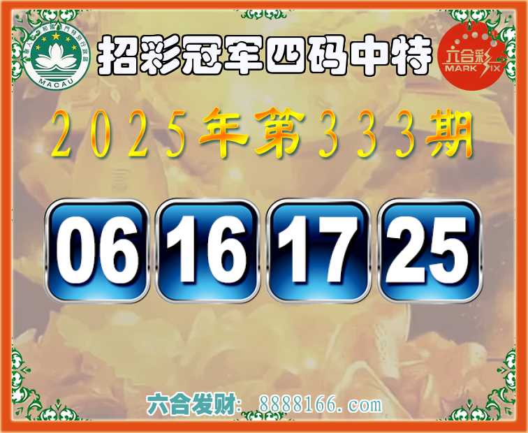 333期:《招彩冠军》 🤩四码中特🤩【06.16.17.25】开:06准