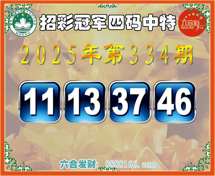 334期:《招彩冠军》 🤩四码中特🤩【11.13.37.46】开:46准