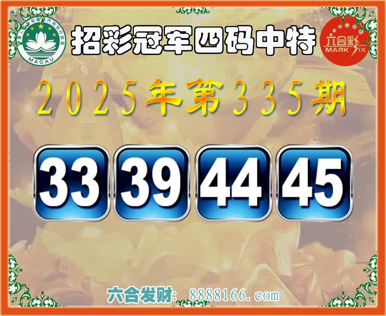 335期:《招彩冠军》 🤩四码中特🤩【33.39.44.45】开:44准