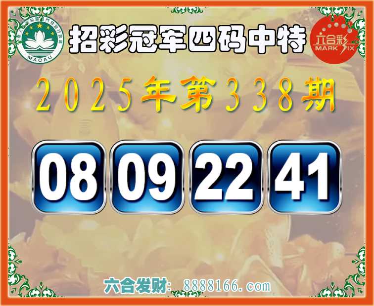 338期:《招彩冠军》 🤩四码中特🤩【08.09.22.41】开:08准