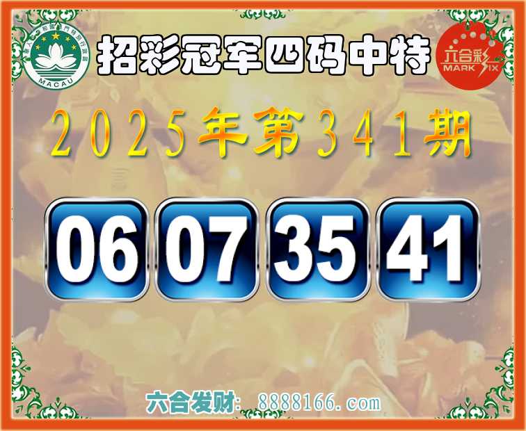 341期:《招彩冠军》 🤩四码中特🤩【06.07.35.41】开:06准