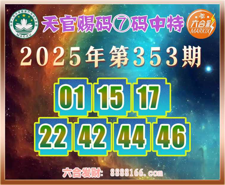 353期:【天官赐码】 👘⑦码中特👘【01.15.17.22.42.44.46】开:01准