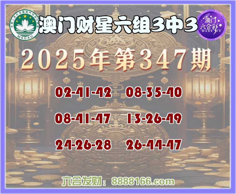 347期:《澳门财星》 🀄六组3中3🀄