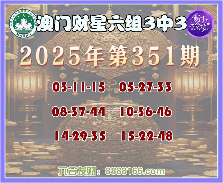 351期:《澳门财星》 🀄六组3中3🀄