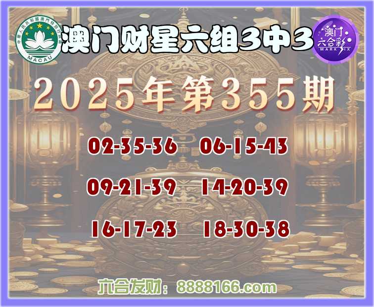 355期:《澳门财星》 🀄六组3中3🀄