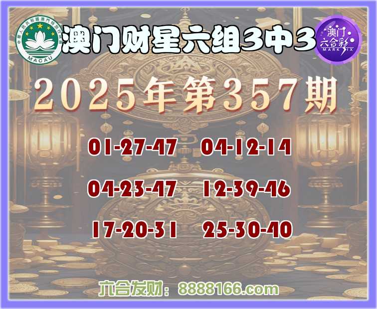 357期:《澳门财星》 🀄六组3中3🀄