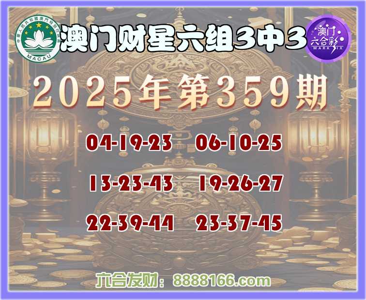 359期:《澳门财星》 🀄六组3中3🀄