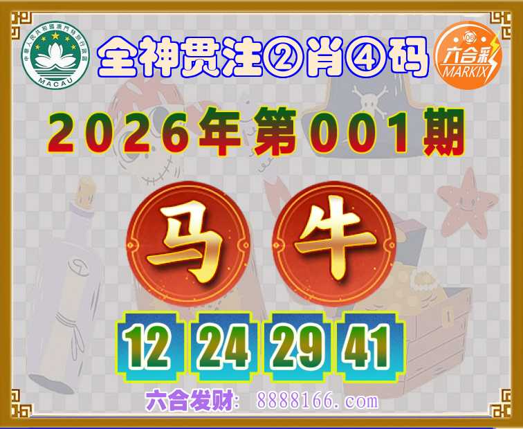 001期:【全神贯注】 🍖②肖④码🍖【马牛】【12.24.29.41】开:牛29准