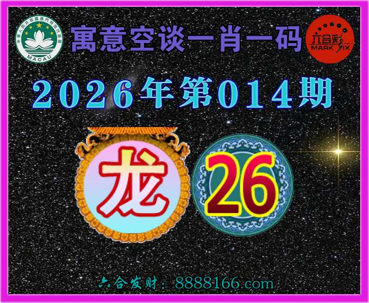 014期:《寓意空谈》 🎈一肖一码🎈【龙】【26】开:龙26准