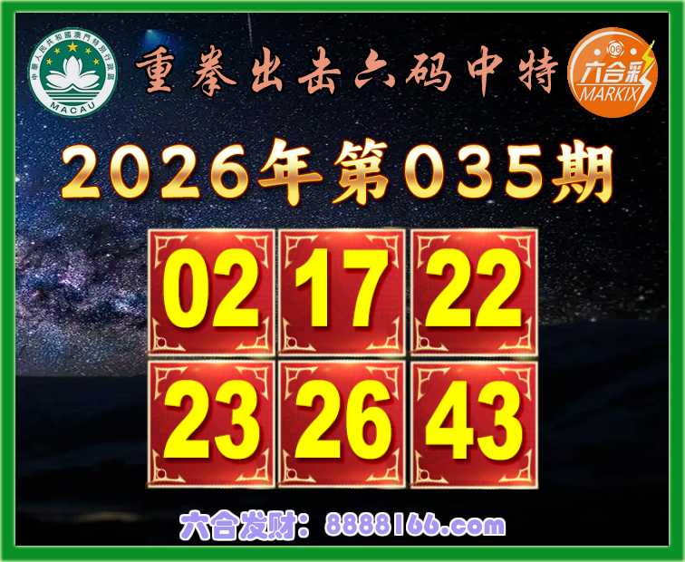 035期:【重拳出击】 🌲六码中特🌲【02.17.22.23.26.43】开:27错
