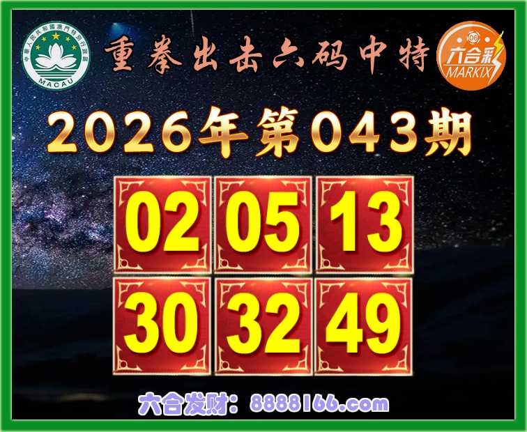 043期:【重拳出击】 🌲六码中特🌲【02.05.13.30.32.49】开:13准
