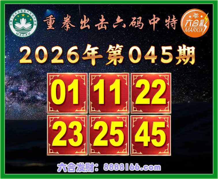 045期:【重拳出击】 🌲六码中特🌲【01.11.22.23.25.45】开:01准