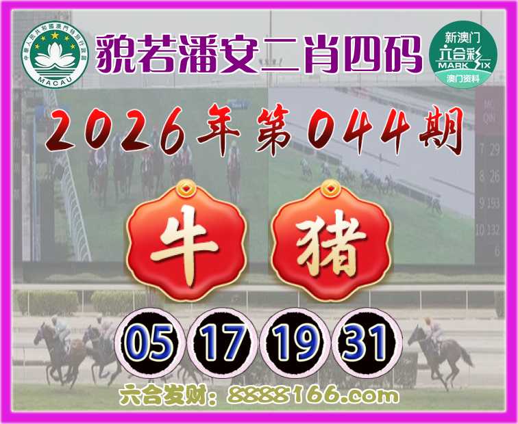 044期:【貌若潘安】 ♥️二肖四码♥️【牛猪】【05.17.19.31】开:猪19准