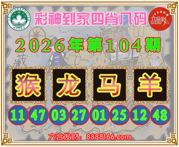 104期:《彩神到家》 ☝️四肖八码☝️【猴龙马羊】开:马01准