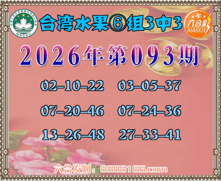 093期:【台湾水果】 🥓⑥组3中3🥓