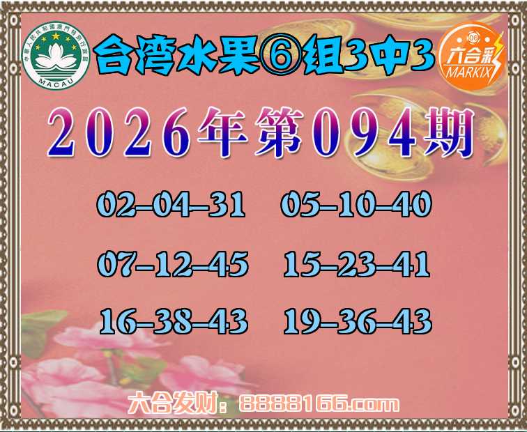 094期:【台湾水果】 🥓⑥组3中3🥓