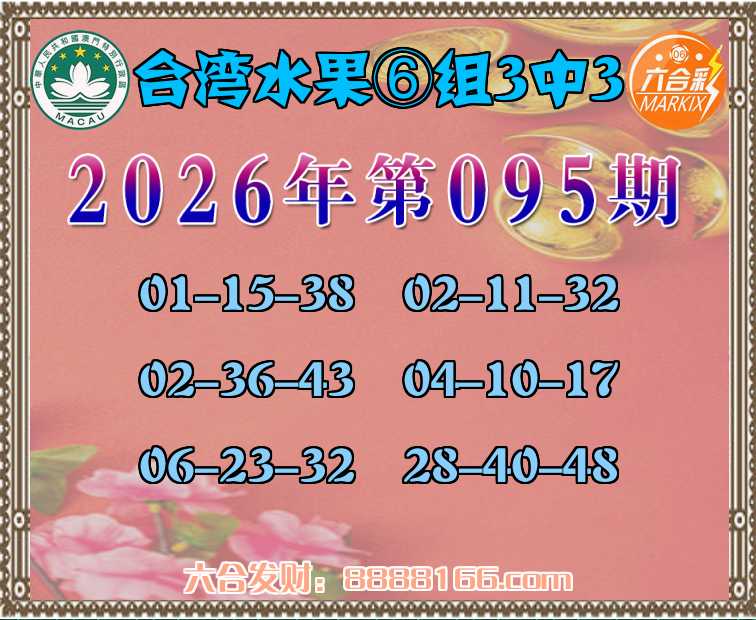 095期:【台湾水果】 🥓⑥组3中3🥓