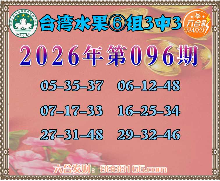 096期:【台湾水果】 🥓⑥组3中3🥓