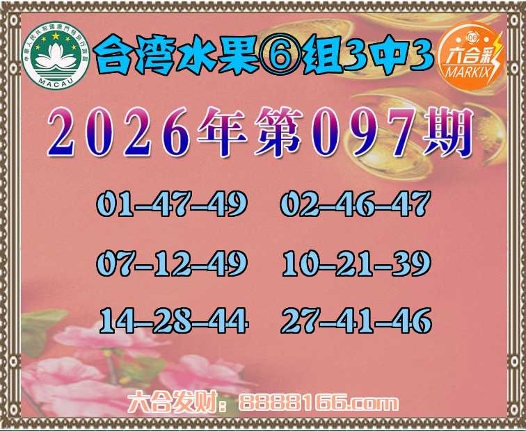 097期:【台湾水果】 🥓⑥组3中3🥓