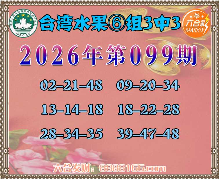099期:【台湾水果】 🥓⑥组3中3🥓