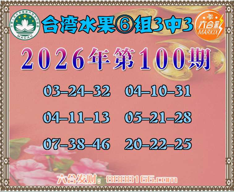 100期:【台湾水果】 🥓⑥组3中3🥓