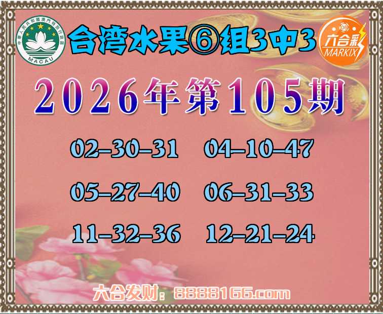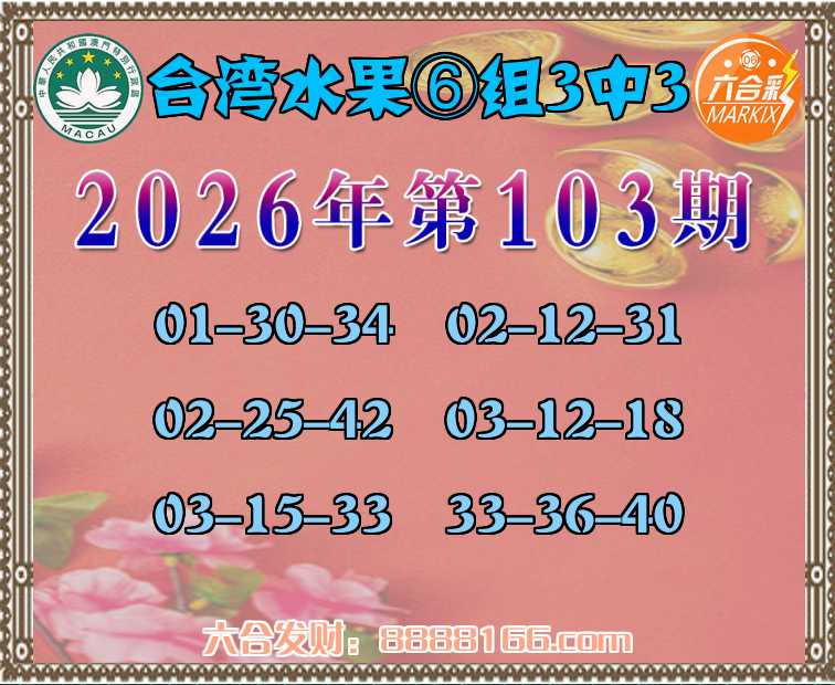 103期:【台湾水果】 🥓⑥组3中3🥓