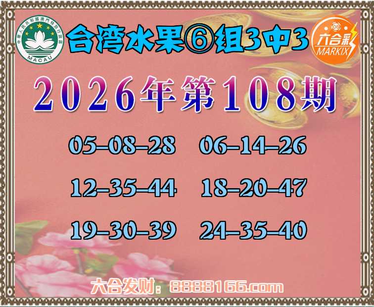 108期:【台湾水果】 🥓⑥组3中3🥓