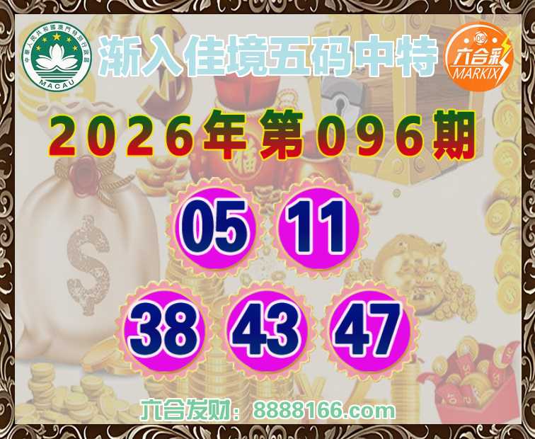 096期: 渐入佳境  ♣️五码中特 ♣️【05.11.38.43.47】开:43
