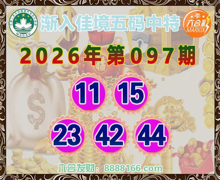 097期: 渐入佳境  ♣️五码中特 ♣️【11.15.23.42.44】开:11