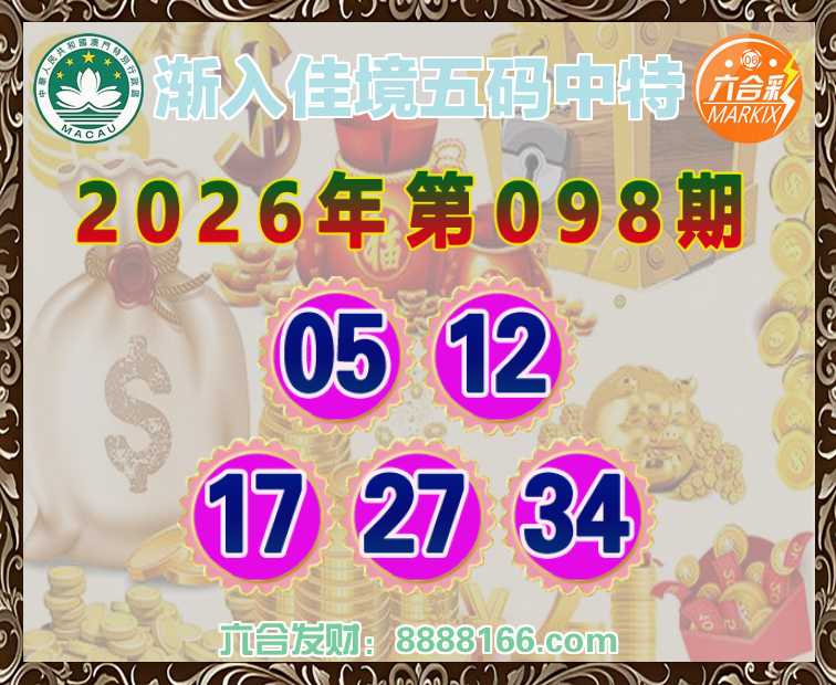 098期: 渐入佳境  ♣️五码中特 ♣️【05.12.17.27.34】开:17
