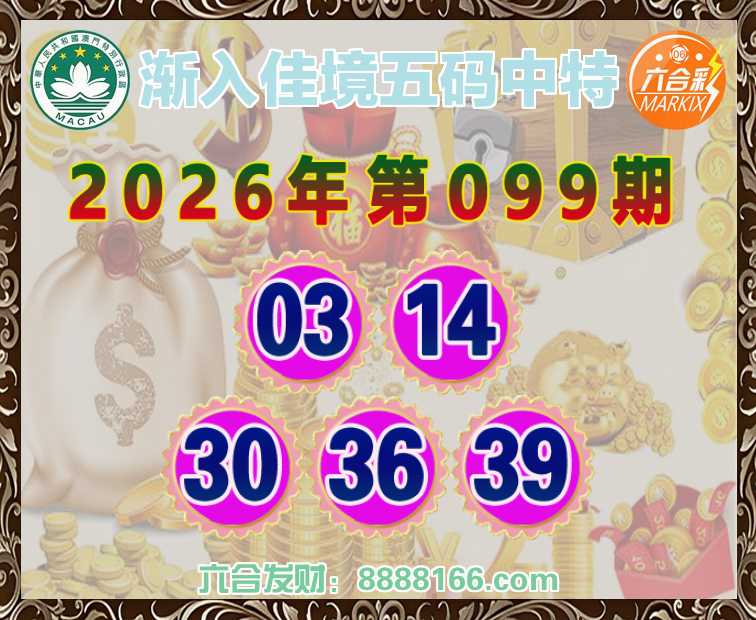 099期: 渐入佳境  ♣️五码中特 ♣️【03.14.30.36.39】开:12