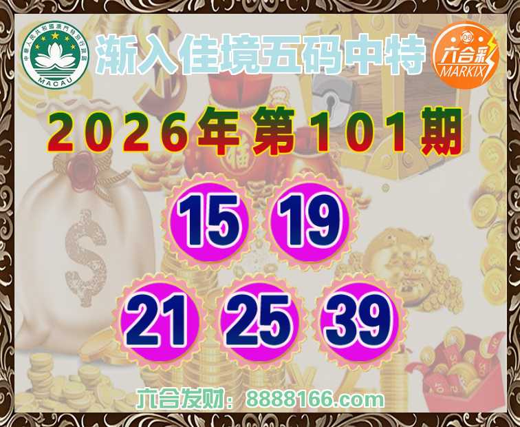101期: 渐入佳境  ♣️五码中特 ♣️【15.19.21.25.39】开:39