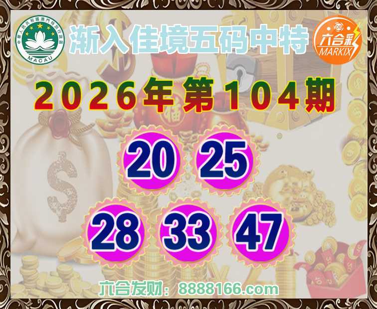 104期: 渐入佳境  ♣️五码中特 ♣️【20.25.28.33.47】开:01