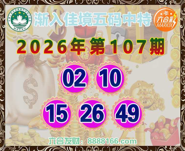 107期: 渐入佳境  ♣️五码中特 ♣️【02.10.15.26.49】开:49