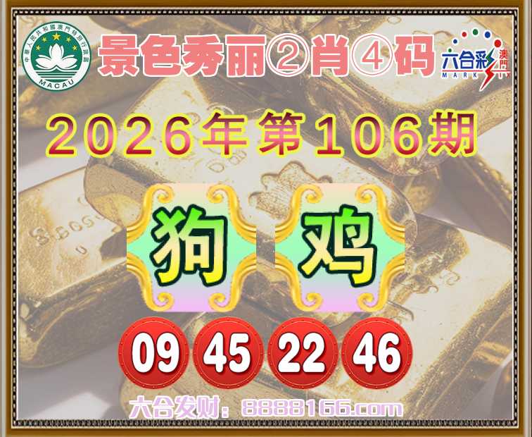 106期:【景色秀丽】 ☘️②肖④码☘️【狗鸡】【09.45.22.46】开:鸡22准