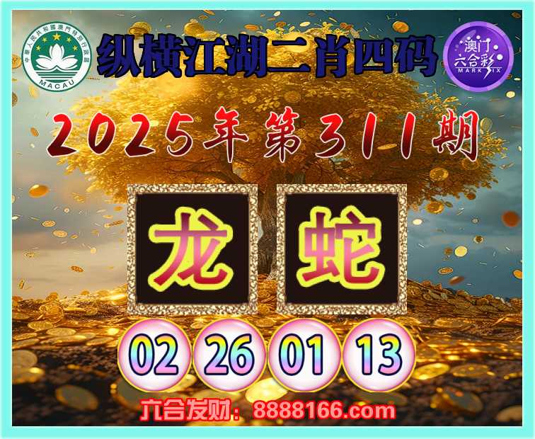 311期:《纵横江湖》 🍧二肖四码🍧【龙蛇】【02.26.01.13】开:蛇37准