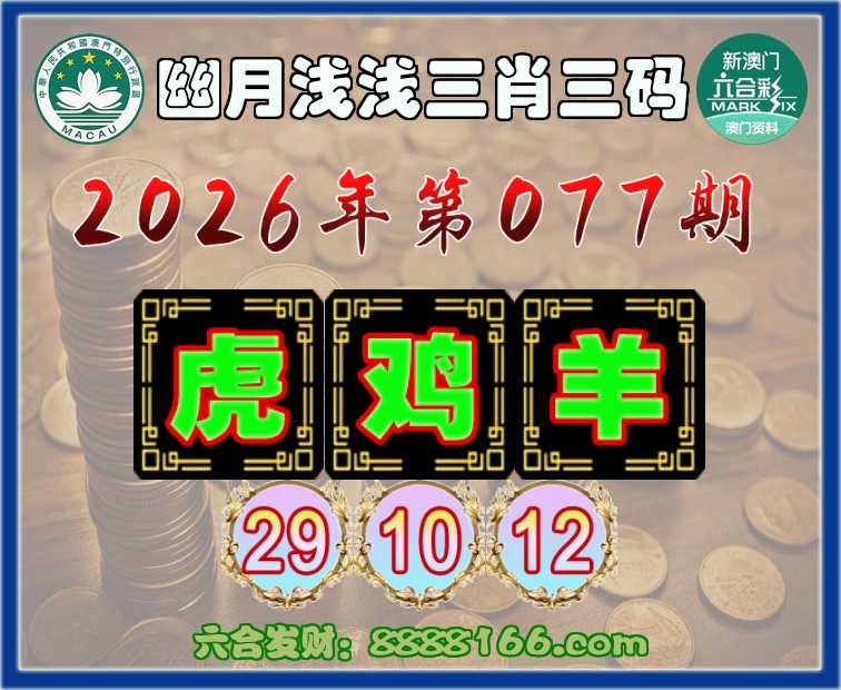 077期: 幽月浅浅 🍏三肖三码🍏【虎鸡羊】【29.10.12】开:虎29准