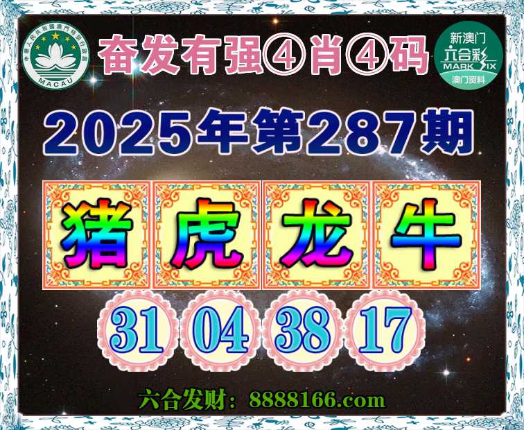 287期:《奋发有强》 🍎④肖④码🍎【猪虎龙牛】【31.04.38.17】开:猴34错