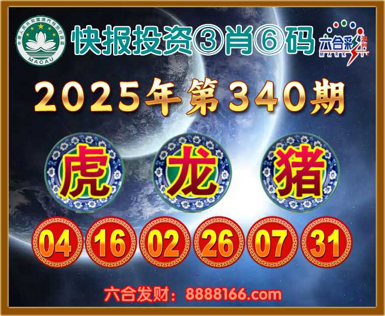 340期:《快报投资》 🌅③肖⑥码🌅【虎龙猪】开:虎16准