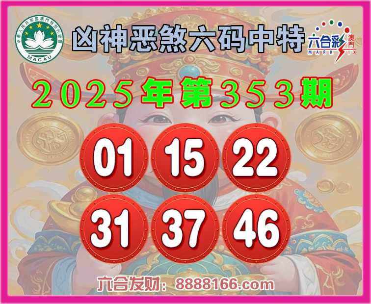 353期:【凶神恶煞】 🍃六码中特🍃【01.15.22.31.37.46】开:01准