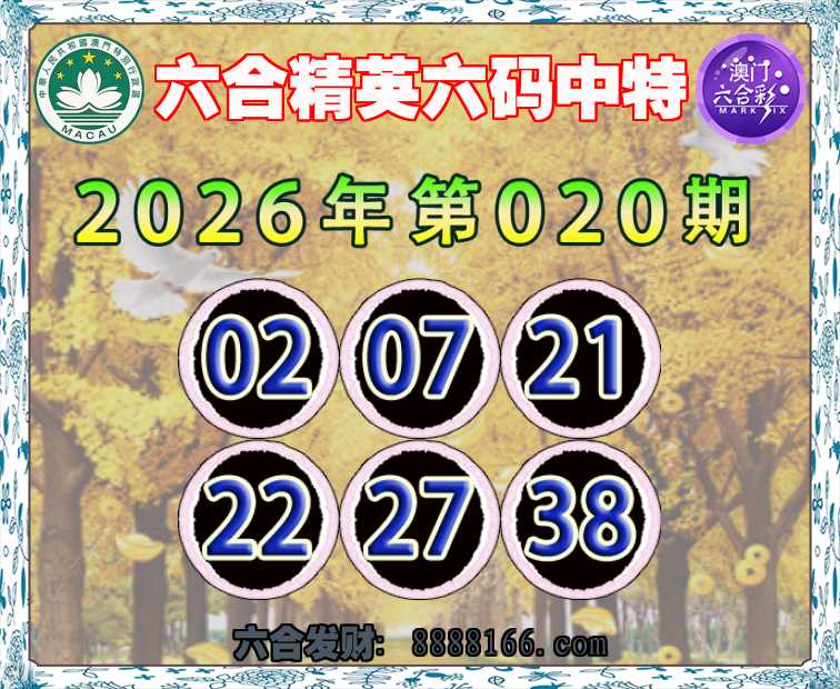 020期:【六合精英】 🚣六码中特🚣【02.07.21.22.27.38】开:12错
