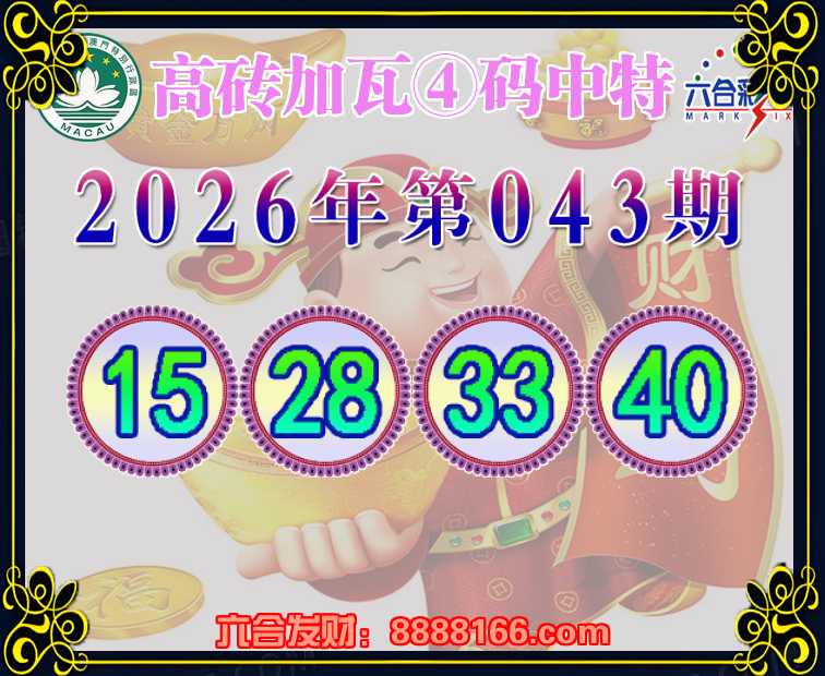 043期:《高砖加瓦》 ♥️④码中特♥️【15.28.33.40】开:13错